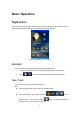 Time Icon Descript Operation Time information contains time information including clock, date and week. Click the icon to enter the page to view the exact time. You can set the alarm quickly. Alarm is turned on. Please refer to section titled Alarm for details. Alarm is turned off. n/a Descript Operation Power message Click the icon to enter the power page. Battery low message n/a battery is in charging n/a Descript Operation HR (heart rate) sensor is connected.