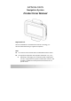 Preface We appreciate your purchase of the HOLUX car navigation. Please read all instructions thoroughly for a full understanding of the products’ features. Precautions and Notices For your own safety, do not operate the controls of the product while driving. Use this product prudently. The product is intended to be used only as a navigation aid. It is not for precise measurement of direction, distance, location or topography. The calculated route is for reference only.