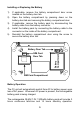 Installing or Replacing the Battery 1) 2) 3) 4) 5) If applicable, remove the battery compartment door screw located on the battery door tab. Open the battery compartment by pressing down on the battery door tab and removing the battery compartment door. If applicable, remove the battery pack by disconnecting the battery cable from the battery connector. Install the battery pack by connecting the battery cable to the connector on the inside of the battery compartment.
