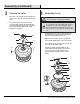 Assembly — Hanging the Fan 5 6 Attaching the mounting bracket to the ceiling WARNING: To reduce the risk of fire, electric shock or other personal injury, mount the fan only to an outlet box or supporting system marked acceptable for fan support and use the mounting screws provided with the outlet box. □ Pass the 120-volt supply wires through the center hole in the mounting bracket (A).