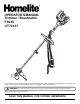 OPERATOR’S MANUAL Trimmer / Brushcutter F3045 UT70127 Your new trimmer has been engineered and manufactured to Homelite’s high standard for dependability, ease of operation, and operator safety. Properly cared for, it will give you years of rugged, trouble-free performance. WARNING: To reduce the risk of injury, the user must read and understand the operator’s manual. Thank you for buying a Homelite trimmer.