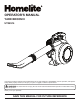 OPERATOR’S MANUAL YARD BROOM II UT08514 WARNING: The engine exhaust from this product contains chemicals known to the State of California to cause cancer, birth defects, or other reproductive harm. CALIFORNIA PROPOSITION 65 SERVICE For parts or service, contact your nearest Homelite authorized service dealer. Be sure to provide all relevant information when you call or visit. For the location of the authorized service dealer nearest you, please call 1-800-242-4672 or visit us online at www.homelite.com.