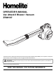 OPERATOR'S MANUAL Vac Attack II Blower / Vacuum ZR08107 Your blower has been engineered and manufactured to Homelite’s high standard for dependability, ease of operation, and operator safety. Properly cared for, it will give you years of rugged, trouble-free performance. WARNING: To reduce the risk of injury, the user must read and understand the operator’s manual before using this product. Thank you for buying a Homelite blower.