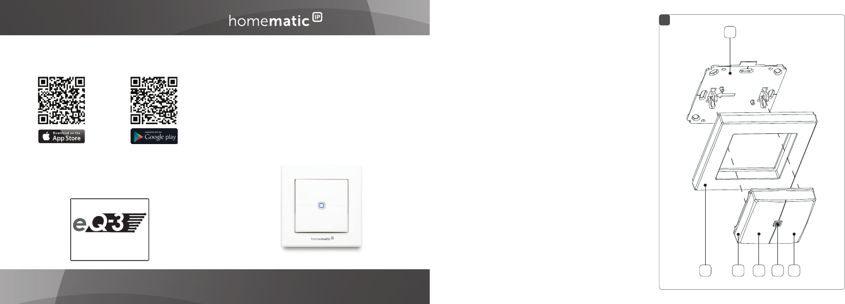 Wechselrahmen 1 Montageplatte 2 Doppelseitige Klebestreifen Wandtaster - 2-fach 2 Schrauben 3,0 x 30 mm 2 Dübel 5 mm 2 1,5 V LR03/Micro/AAA Batterien 1 Bedienungsanleitung Wall-mount Remote Control 2-button S. 1 p. 21 1. Ausgabe Deutsch 03/2015 Dokumentation © 2015 eQ-3 AG, Deutschland Alle Rechte vorbehalten.