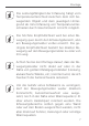 Troubleshooting Short orange Teach-in mode Please enter the last flashing (every active (for 3 four numbers of the 10 s) minutes) device serial number to confirm (see “6 Start-up” on page 31). Red flashing every second Functional test Please wait until the function test has finished after 10 minutes (see sec. “7 Function test” on page 34). 6x long red flashing Device defective Please see your app for error message or contact your retailer.