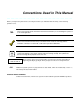 Conventions Used in This Manual • • • • • • • • • • • • • • • • • • • • • • • • • • • • • • • • • • • • • • • • • • • • • • • • • • Before you begin using this manual, it is important that you understand the meaning of the following symbols (icons). These notes include specific information that must be followed if you are installing this system for a UL Listed application.