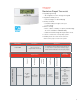 Honeywell Thermostat Cross-Reference Chart Yes TB8220U1003 7-Day Yes Yes Yes (Cumulative) Touchscreen 2 Heat/ 2 Cool TB7220U1012 7-Day Yes Yes Yes (Cumulative) Soft Keys TB7100A1000 7-Day Yes Yes Yes (Cumulative) Soft Keys Yes Yes Conventional/ Heat Pump LonWorks® Commmunicating Capability Recovery Ramps Permanent Memory Retention Feat u Real Time Clock (Automatically Updates Daylight Savings) PTAC Fan Coil 3 Heat/ 3 Cool or 3 Heat/ No 2 Heat/ 2 Cool 4 Cool T7351F2010 Power Met