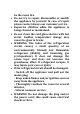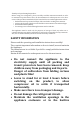 • WARNING: Do not use multiple portable socket-outlets or portable power supplies. We do not recommend the use of extension leads and multi-way adapters. • Do not attempt to sit or stand on the top of the appliance. You could injure yourself or damage it. This appliance is not designed for stacking with any other ones. • The product is designed and built for domestic household use only. • Only original parts supplied by the manufacturer may be used.