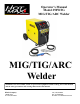 Operator’s Manual Model 250WFG MIG/TIG/ARC Welder MIG/TIG/ARC Welder WARNING: Do not assemble, install, or operate this equipment without reading ALL of this manual and the safety precautions and warnings illustrated in this manual. KDAR Company 1 Mulch Lane St. Louis, MO 63044 Tel: (314) 692-8555 Fax: (314) 692-8578 Web Site: www.hotmaxtorches.
