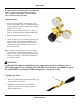 Operation It is important that all fittings have been tightened with a wrench by this point. Insure the tank valve, regulator valve handle, and torch handle valve is turned to the off position. Opening Valves 1. Slowly open the cylinder valve to allow gas to flow to the regulator. Once the regulator begins to register pressure, open the cylinder valve an additional 1 to 1 1/2 turns. Note: This must be done slowly, as a sur ge of pressure could damage the regulator diaphragm. 2.
