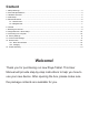 1. Safety Warnings 1) Do not disassemble the product or accessories. 2) Do not use alcohol, thinner, or benzene to clean the surface of thedevice. 3) The device should be charged for about 4 hours during the firstthree charge cycles. 4) Do not store the device in places with high temperature, humidity,or dust. Avoid dropping or strong impact. 5) Use an appropriate volume setting. High volume may causehearing damage when using headphones. 6) To charge the device, use the included USB cable and adapter.
