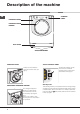 Description of the machine EN CONTROL PANEL PORTHOLE DOOR PORTHOLE DOOR HANDLE KICK STRIP ADJUSTABLE FEET PORTHOLE DOOR TOUCH CONTROL PANEL Always use the handle to open the porthole door (see figure). DETERGENT DISPENSER DRAWER The detergent dispenser drawer is located inside the machine and can be accessed by opening the door. Refer to the chapter “Auto Dose System” for information on operation.