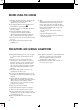 N HOW TO USE THE HOB y C The burner flames can be adjusted by turning the knobs on the control panel. The symbols on these knobs mean: x : gas line turned off (burner flame out) tap completely open (maximum gas flow æ : gas for cooking and broiling) æ: gas tap partially open for heating and warming. Important! The knob must always be at a position between (maximum flow rate) and (minimum flow rate). æ æ Never turn the knob to a position between (maximum flow) and x (shut-off).