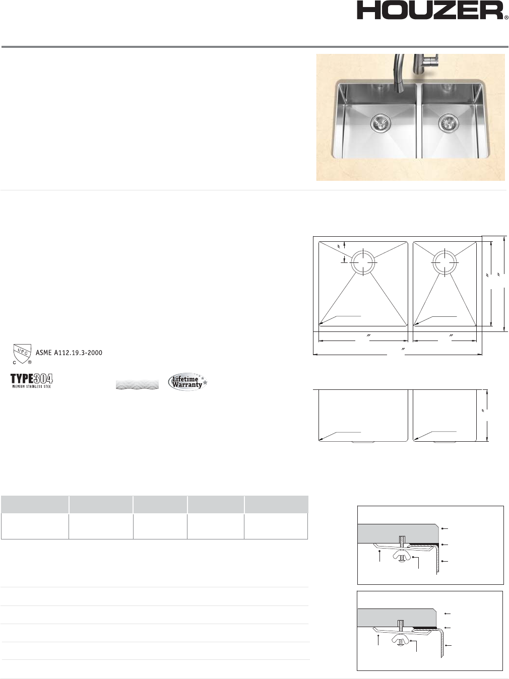 HOUZER Inc. 2605 Kuser Road, Hamilton, NJ 08691 Phone 1-800-880-3639 Fax 1-609-584-1930 www.HouzerSink.com