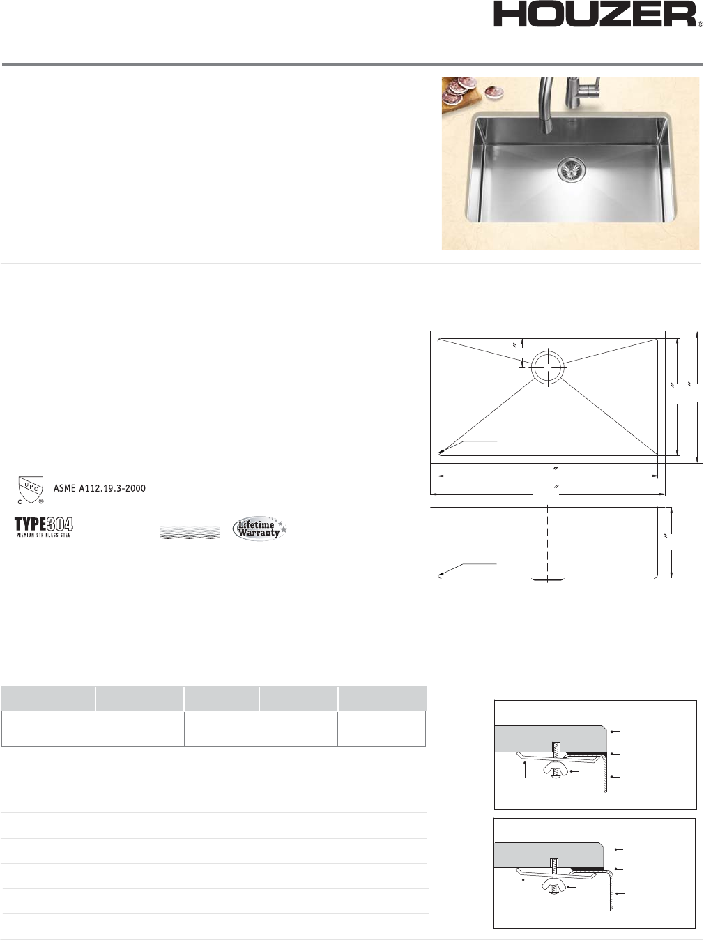 HOUZER Inc. 2605 Kuser Road, Hamilton, NJ 08691 Phone 1-800-880-3639 Fax 1-609-584-1930 www.HouzerSink.com
