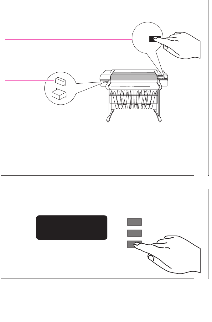 Hold down the Enter key on the front panel and then switch on the plotter by