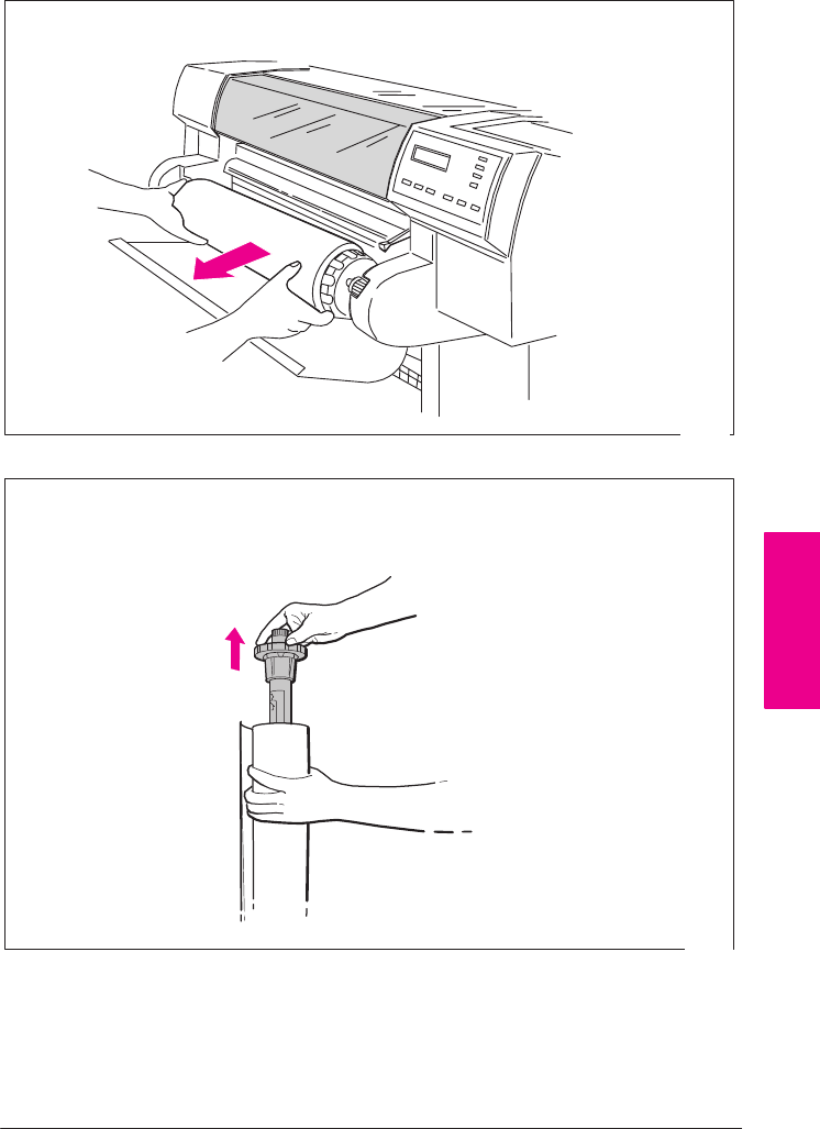 Remove the old roll of media by pulling firmly on each end of the spindle.