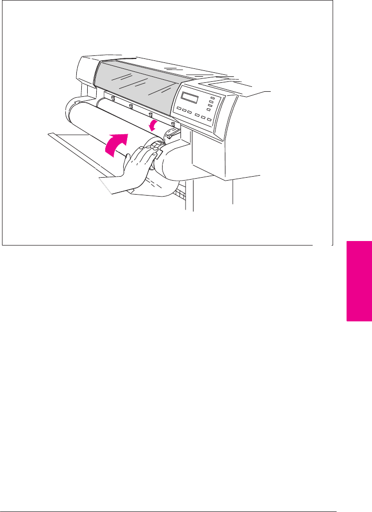 roll. Make sure the leading edge of the media is outside the roll cover, and