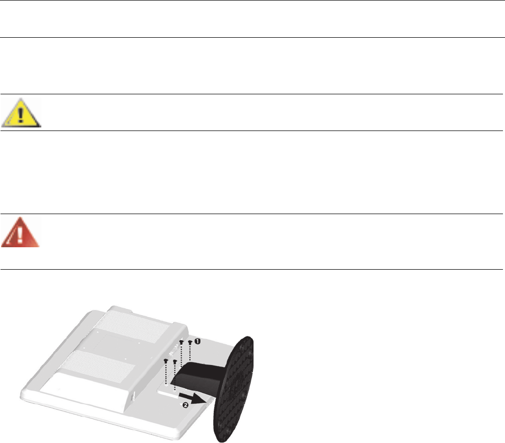 Before you mount the monitor on a wall, a swing arm, or other mounting fixture, you must remove the monitor