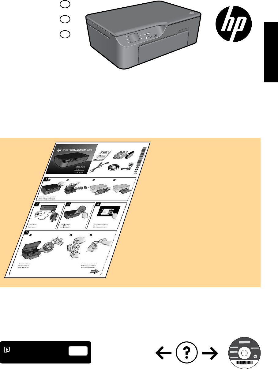 RU HE English CQ191-90047 *CQ191-90047* *CQ191-90047* Printed in [English] © 2010 Hewlett-Packard Development Company, L.P. EN HP DESKJET 3070A e-ALL-IN-ONE SERIES Start by following the setup instructions in the setup poster. Cyan, Magenta, Yellow, and Black Cartridges 178 www.hp.