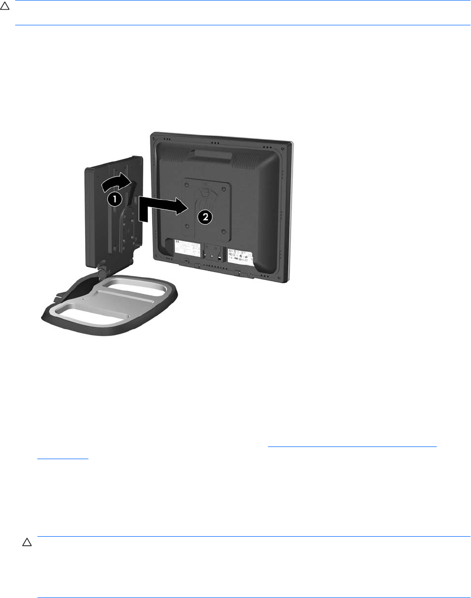 The HP Quick Release can be removed from the monitor stand and installed on a mounting fixture. This