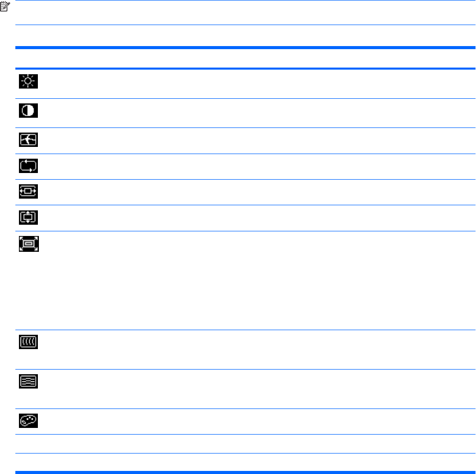 NOTE: The order and location of the OSD menu items vary by model. All OSD menu items listed below