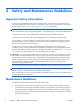 2 Safety and Maintenance Guidelines Important Safety Information A power cord is included with the monitor. If another cord is used, use only a power source and connection appropriate for this monitor. For information on the correct power cord set to use with the monitor, refer to the Power Cord Set Requirements on page 38 in Appendix C. WARNING! To reduce the risk of electric shock or damage to the equipment: • Do not disable the power cord grounding feature.