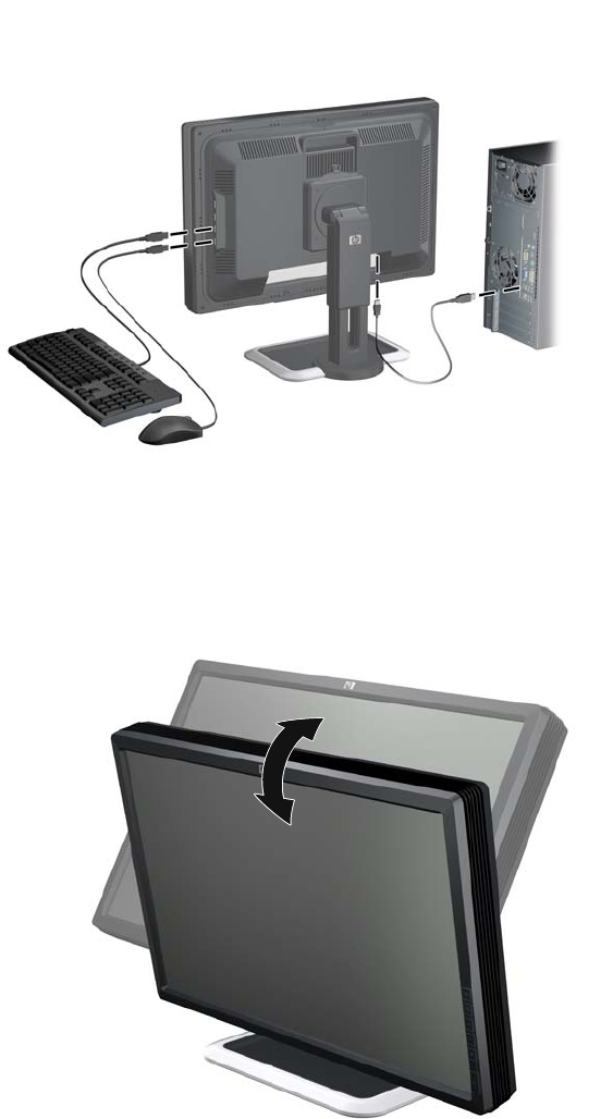 2. Connect the USB devices to the USB downstream connectors on the side panel of the monitor.