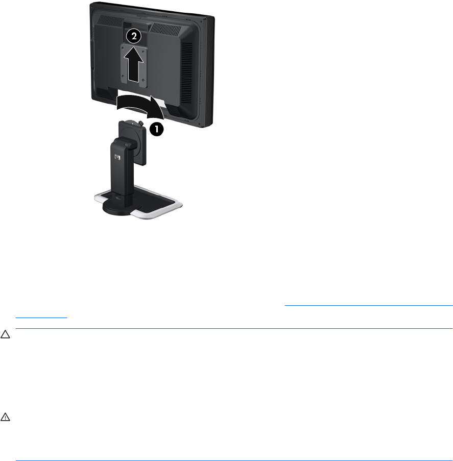 CAUTION: This monitor supports the VESA industry standard 100 mm mounting holes. To attach