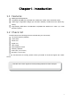 Chapter I. Introduction 1.1 Features Multilingual OSD adjustment Compatible with IBM VGA, extended VGA, VESA VGA, SVGA, XGA, and SXGA modes Wide range of applicable voltages (AC 100-240V 50/60Hz ) enables direct use without any setting. Plug-and-play VESA DDC1/ 2B Standard. Compatible with Windows 9x / 2000 / xp / Vista operation systems 1.