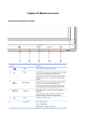 4.4 OSD operational instructions Icon Main menu option Submenu option Note To adjust the brightness level of the screen. The factory default range is 90. To adjust the contrast level of the screen.The factory default range is 80. Brightness Contrast Selects the screen color.The factory is 6500K or Custom color,depending on the mode. Color Warm- 5000K Changes color to slightly reddish white. Standard- 6500K Uses standard colors (default). Cool- 9300K Change color to slightly blueish white.