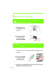 To remove the old print cartridge: 1. Open the top cover. Push the cover gently until it stays up. Wait for the print cartridge to move to the right side of the Printing Mailbox. ), then Using the HP A10 Printing Mailbox 2. Lightly press down on the print cartridge to release it ( remove it from the cartridge slot ( ). If you are replacing the print cartridge, please recycle it. To install the print cartridge: 1. Remove the new print cartridge from the pouch. 2.