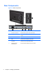 Rear Components Figure 2-2 Rear Components 4 Component Function 1 AC Power Connector Connects the AC power cord to the monitor. 2 DisplayPort Connects the DisplayPort cable (not included) to the monitor. 3 DVI Connects the DVI-D cable to the monitor. 4 VGA Connects the VGA cable to the monitor. 5 USB Upstream Connector Connects the USB hub cable to the monitor's USB hub connector and to a host USB port/hub. 6 USB Downstream Connectors (2) Connects optional USB devices to the monitor.