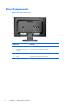 Rear Components Figure 2-2 Rear Components 4 Component Function 1 AC Power Connector Connects the AC power cord to the monitor. 2 Audio Connector (select models) Connects the audio cable to the monitor. 3 DVI-D (select models) Connects the DVI-D cable to the monitor. 4 VGA Connects the VGA cable to the monitor.