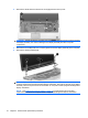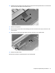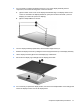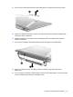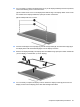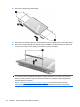 1. Disconnect the display panel cable (1) and the webcam/microphone cable (2) from the system