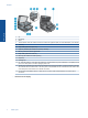 Chapter 1 c. Locate the ink cartridge that is indicated in the error message, and then press the tab on the ink cartridge to release it from the slot. Press the tab on the cartridge to remove it Online Topics d. Hold the cartridge by its sides with the bottom pointing up and locate the electrical contacts on the cartridge. The electrical contacts are four small rectangles of copper or gold-colored metal on the bottom of the cartridge.