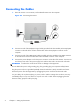 Connecting the Cables 1. Place the monitor in a convenient, well-ventilated location near the computer. Figure 2-3 Connecting the monitor 2. Connect one end of the DisplayPort signal cable (provided with select models) to the DisplayPort connector on the side of the monitor and the other end to the DisplayPort connector on the computer. 3.