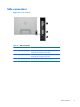 Side connectors Figure 2-2 Side connectors Table 2-1 Side connectors Connector Function 1 DisplayPort Connects the DisplayPort video cable (provided with select models) from the computer to the monitor 2 HDMI Connects the HDMI video cable (provided with select models) from the computer to the monitor 3 DC Power Jack Connects the external power adapter to the monitor Side connectors 3