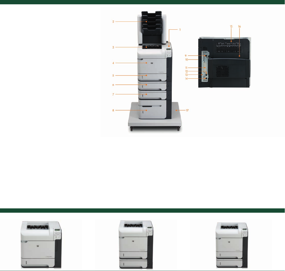 HP LaserJet P4015X Printer shown with optional 500-sheet 5-bin