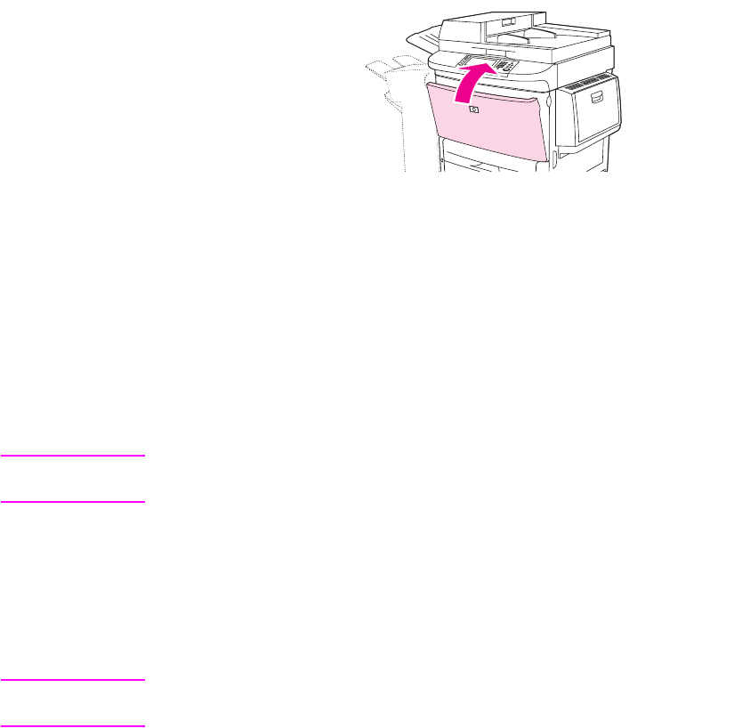 6 Close the front cover, reconnect all cables, and turn the MFP on (button in).