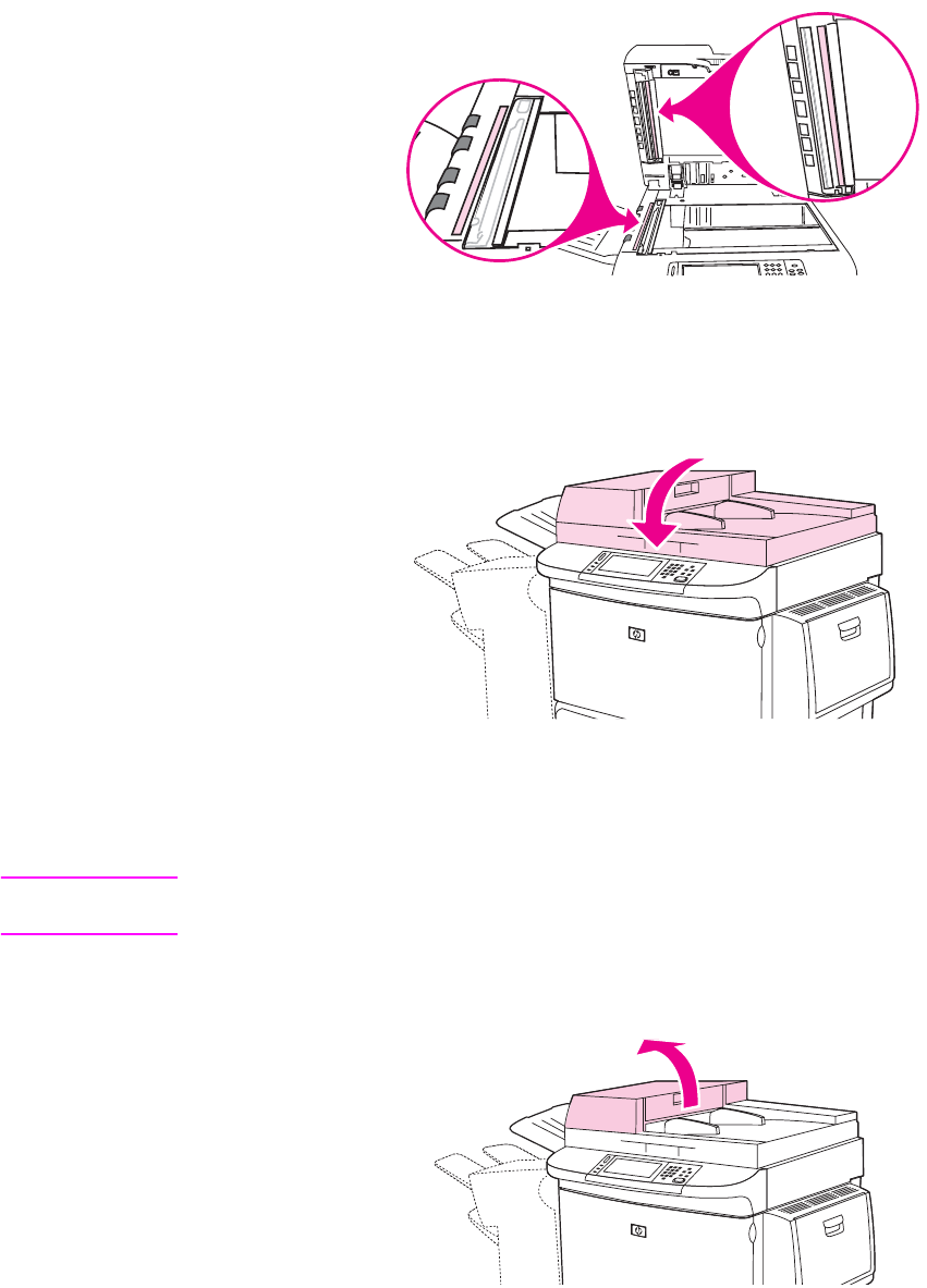 6 Clean the ADF backing and the calibration strips by wiping them with a clean, damp, lint-free