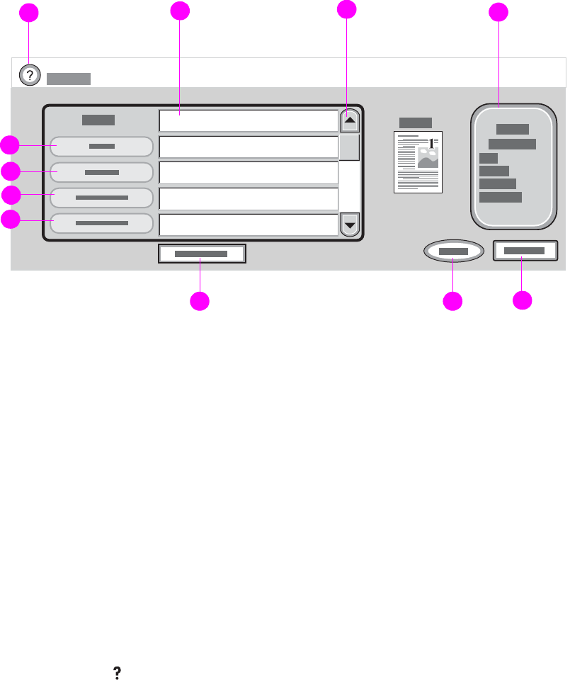 Touch these buttons to set up e-mail recipients. To set up e-mail recipients, you can type e-mail