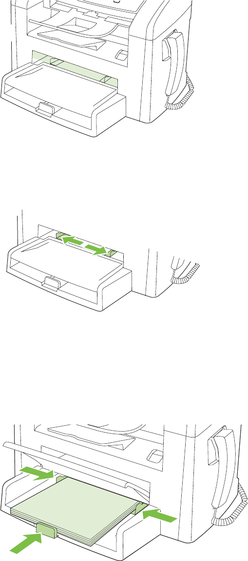 介质导板可确保介质正确装入产品,并防止打印歪斜。 纸盘 1 两侧和后部各有一个介质导板。 在装