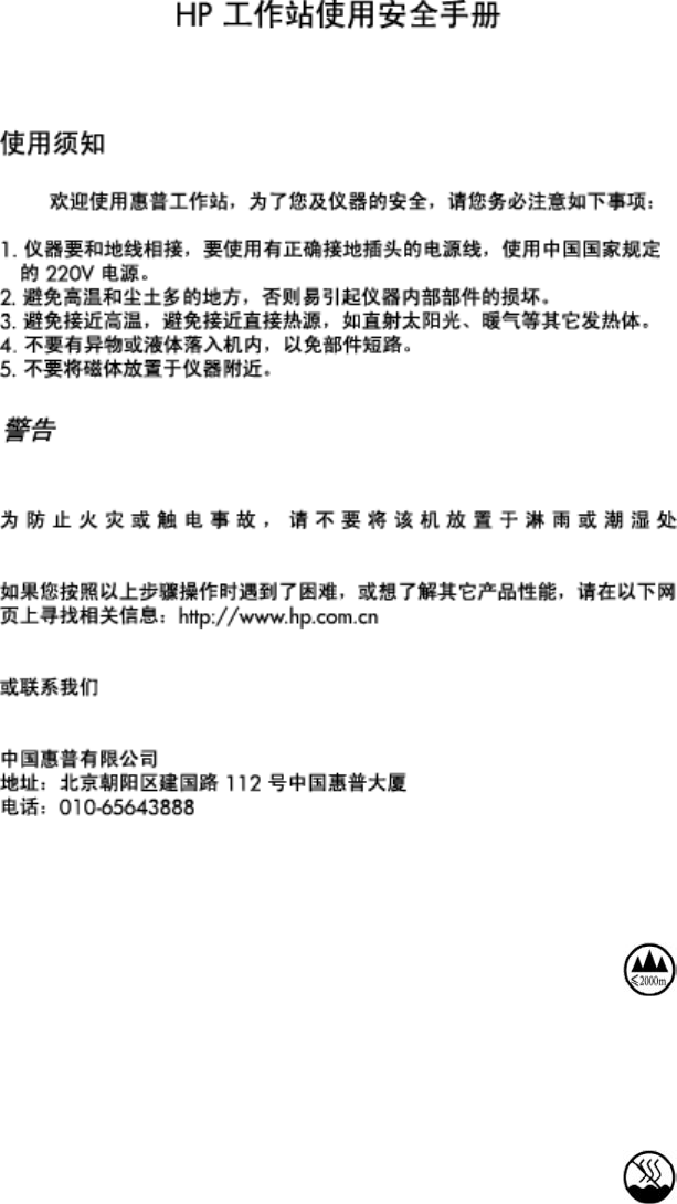 海拔警告仅适用于在海拔 2000m 以下地区使用的产品
