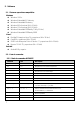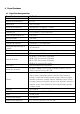 4. Especificaciones 4.1. Especificaciones generales Especificaciones Producto Método de visualización Definición HSN-PD01 LCD TFT Resolución 320 × 32 ptos. Modo de visualización Alfanumérico: 20 dígitos × 2 líneas Matriz de puntos por caracter 16 × 16 ptos. para 2x20 Tamaño pto.