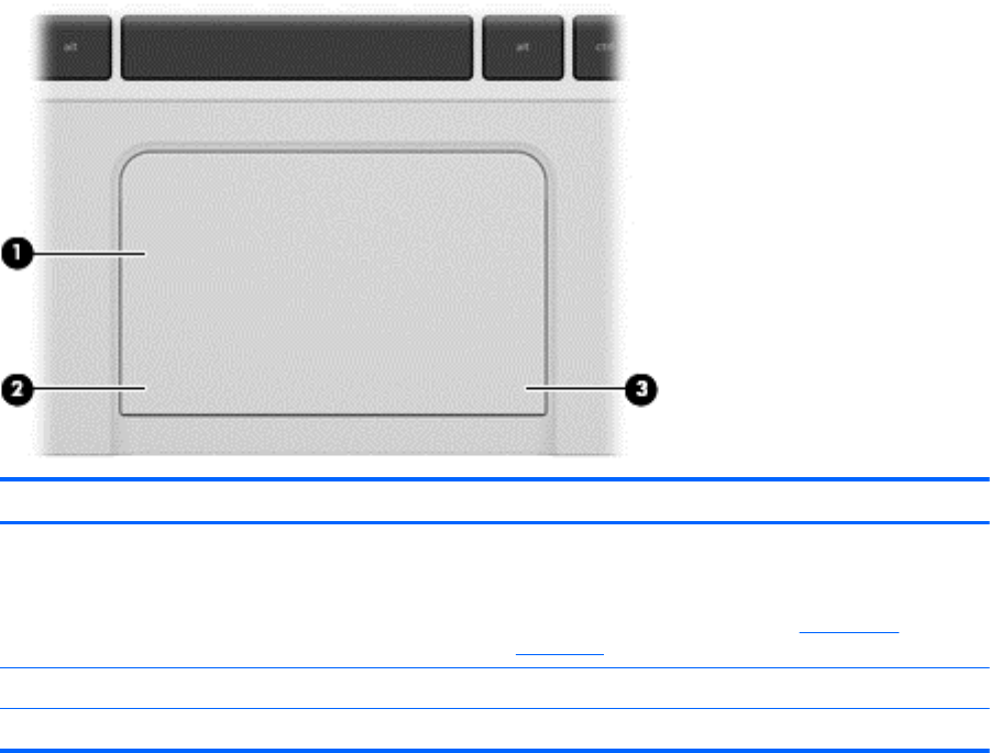 (1) TouchPad zone Moves the on-screen pointer and selects or activates items