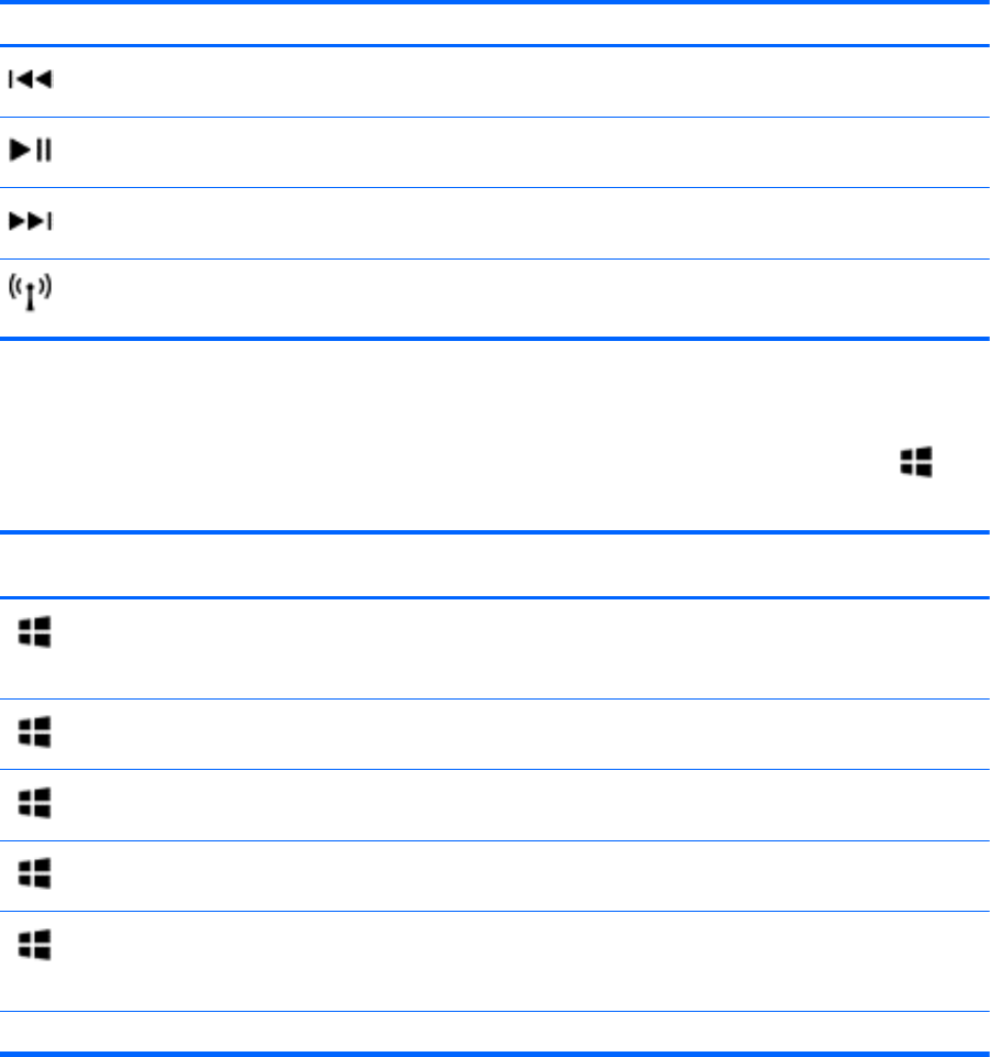 f10 Begins, pauses, or resumes playback of an audio CD, a DVD, or a BD.