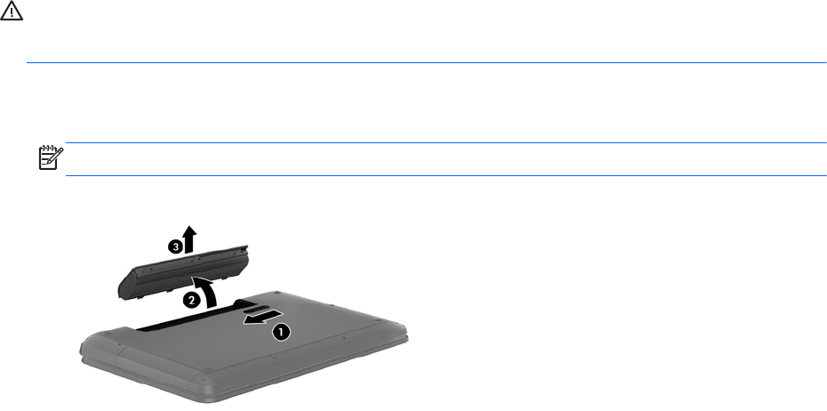 CAUTION: Removing a user-replaceable battery that is the sole power source for the computer can