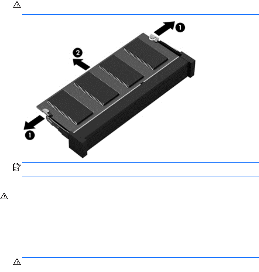 b. Grasp the edge of the memory module (2), and then gently pull the module out of the