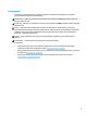 ● Nie ograniczaj dopływu ani wypływu powietrza z komputera poprzez zablokowanie otworów wentylacyjnych lub wlotów powietrza, jak przedstawiono na ilustracji. Procedury instalacyjne OSTRZEŻENIE! Aby zmniejszyć ryzyko porażenia prądem, pożaru lub uszkodzenia sprzętu, należy przestrzegać następujących zaleceń: ● Kabel zasilający należy podłączać do gniazdka sieci elektrycznej znajdującego się w łatwo dostępnym miejscu.